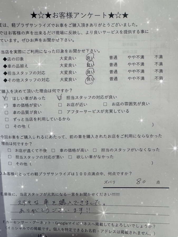 K様のカーライフが素敵なものになりますように軽自動車サンライズ青森本店一同精一杯お手伝いさせて頂きます!!!