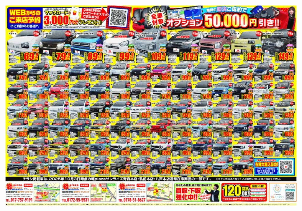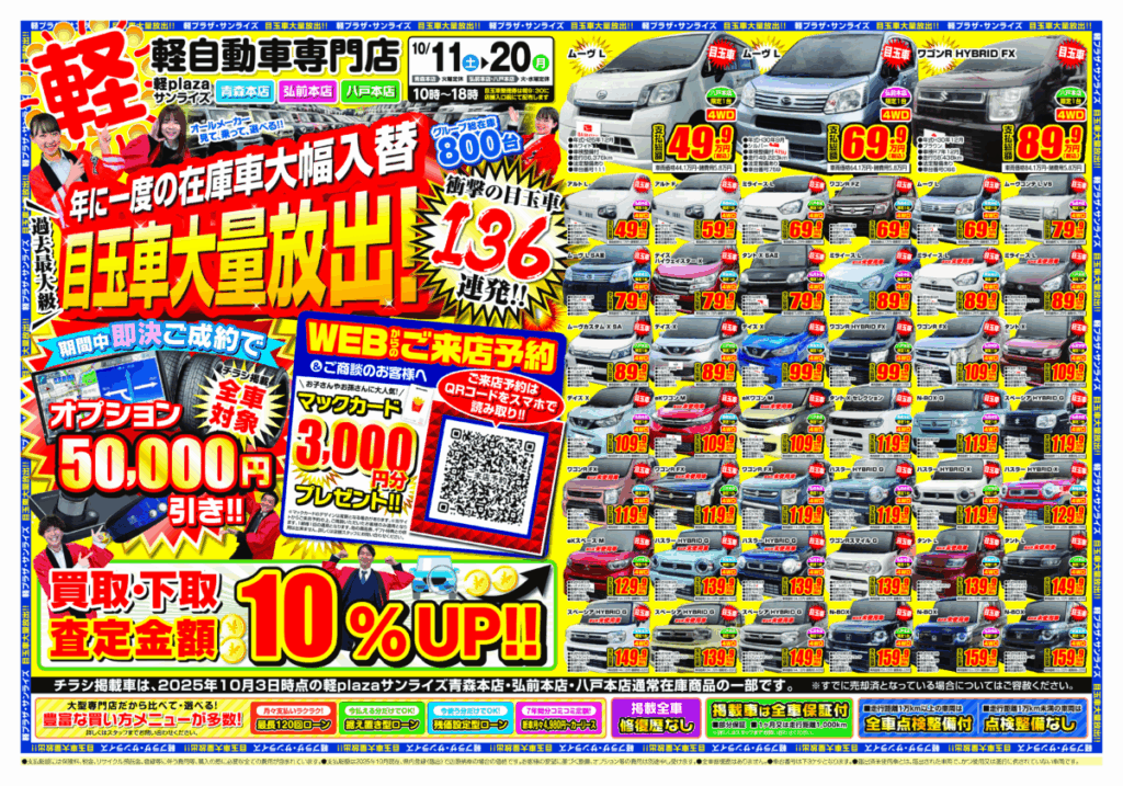 軽プラザサンライズでは10月11日(土)~10月20日(月)に【過去最大級の目玉車】を大量放出いたします!