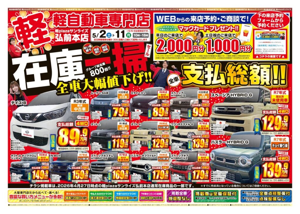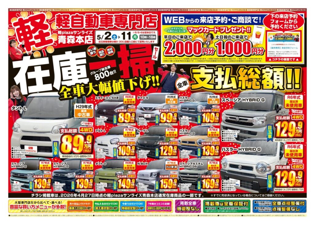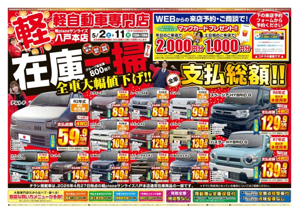 軽プラザ5月2日~11日【在庫一掃セール】Webチラシ
